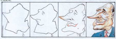 שיראק ומפת צרפת – תחילת המאה-21 בעולם הערבי מקובלת כיום בעיתונות הקריקטורה הפוליטית