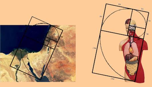 מראות ריבועי זהב המונחים מעל ארץ ישראל כולל חצי האי סיני, וגוף האדם.